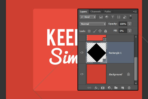 第2步 去编辑>自由变换(按Ctrl / Cmd + T)进入自由变换模式。然后,按住Shift键,然后旋转黑色矩形-45°(逆时针)。