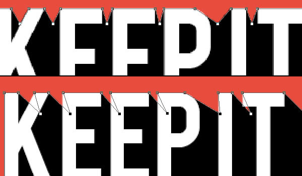 第4步 当您到达最后一个字母的右上角,将钢笔工具平行于红色矩形阴影,并扩展它,以便它涵盖了红色矩形右下角,并添加一个点那里。