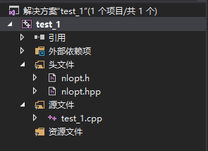 并且头文件中添加F:NLopttestnloptbulidsrcapi中的nlopt.h,nlopt.hpp文件。(到目前为止,我们只需要bulid文件夹里卖弄的东西。在bulid中找到这两个文件位置添加进去,或者拿出来放到自己程序的目录下也可以,记得include这两个文件的路径就行)