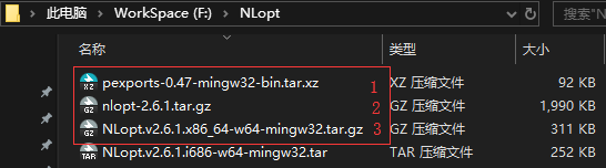 下载:NLopt+官方为C++编译的dll文件+pexports
