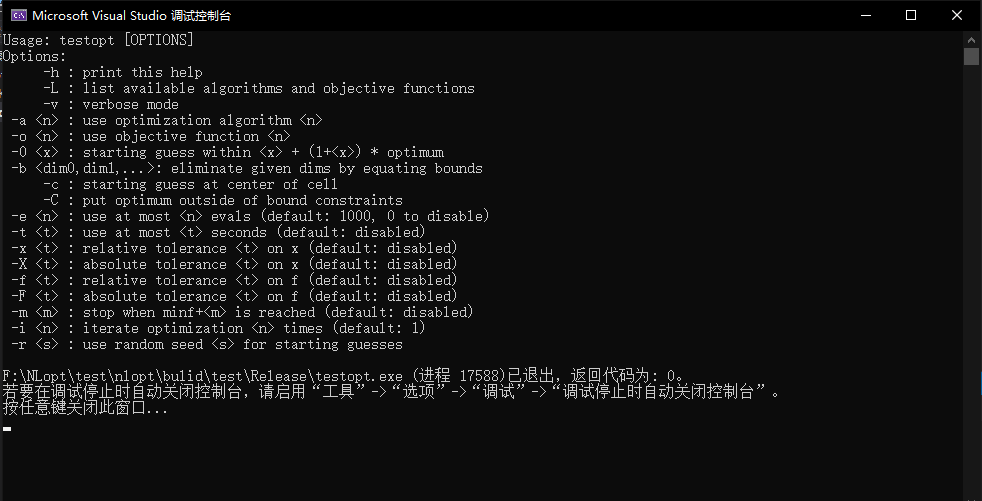 以上就是调皮大白最近收集整理的关于NLopt在C 和Windows平台VS编译器上的配置与使用(超详细教程)的全部内容,更多相关NLopt在C内容请搜索靠谱客的其他文章。