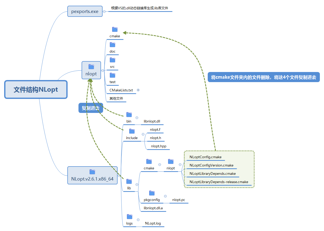 接下来继续移动文件,将.lib文件移动到lib文件夹,如nlopt文件说明图所示。