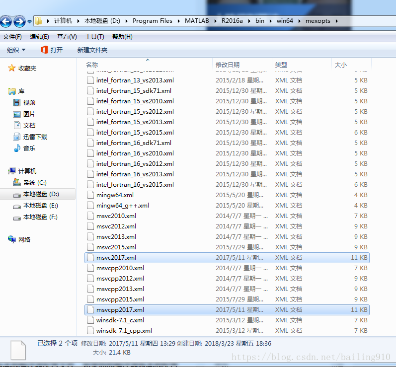路径:D:Program FilesMATLABR2016abinwin64mexopts