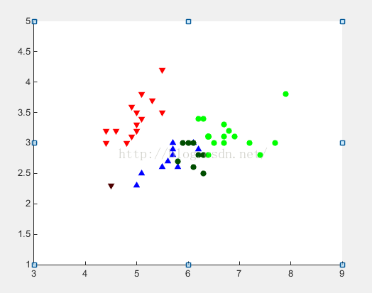 scatter(x2,x1,40,[0.3,0,0],'v','filled'); errnum = errnum+1;end end