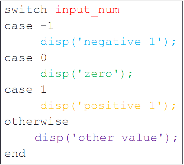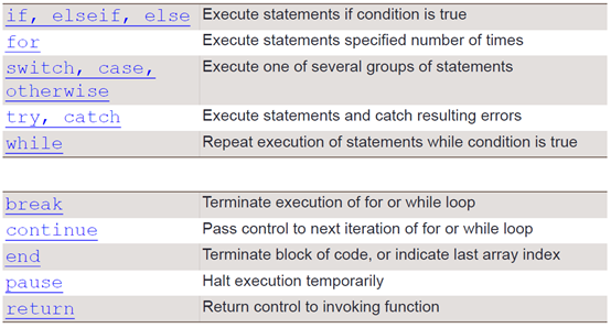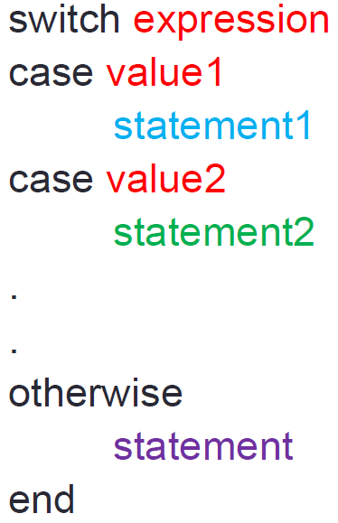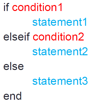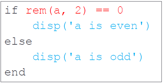 - if else if else 选择语句: rem(a,2) --> a对2取余数,disp(x) --> 显示x。
