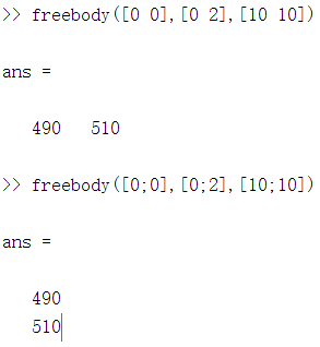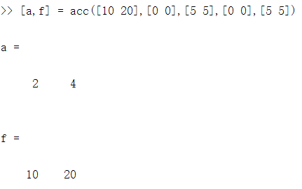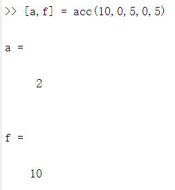 此方法中,有两个输出,通过定义function时采用[x,y,z...]的格式定义输出参数。公式内参数相乘除仍使用 .* ./ ,保证可同时计算多组输入,测试结果: