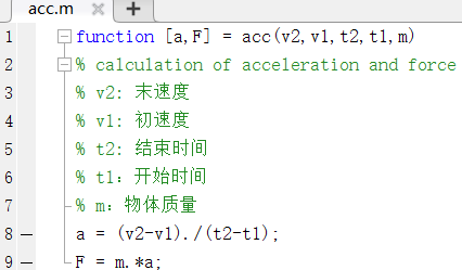 在方法中,公式内参数相乘除都使用 .* ./ ,这么做的目的是能够同时计算,输入的多组数据。如下图: