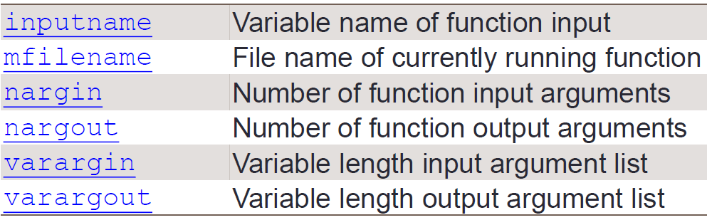 - Matlab function内建变数: