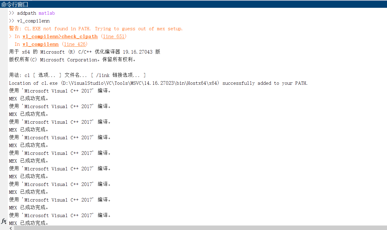 编译时需要注意将cl.exe的路径是在VSVCToolsMSVC14.16.27023binHostx64x64