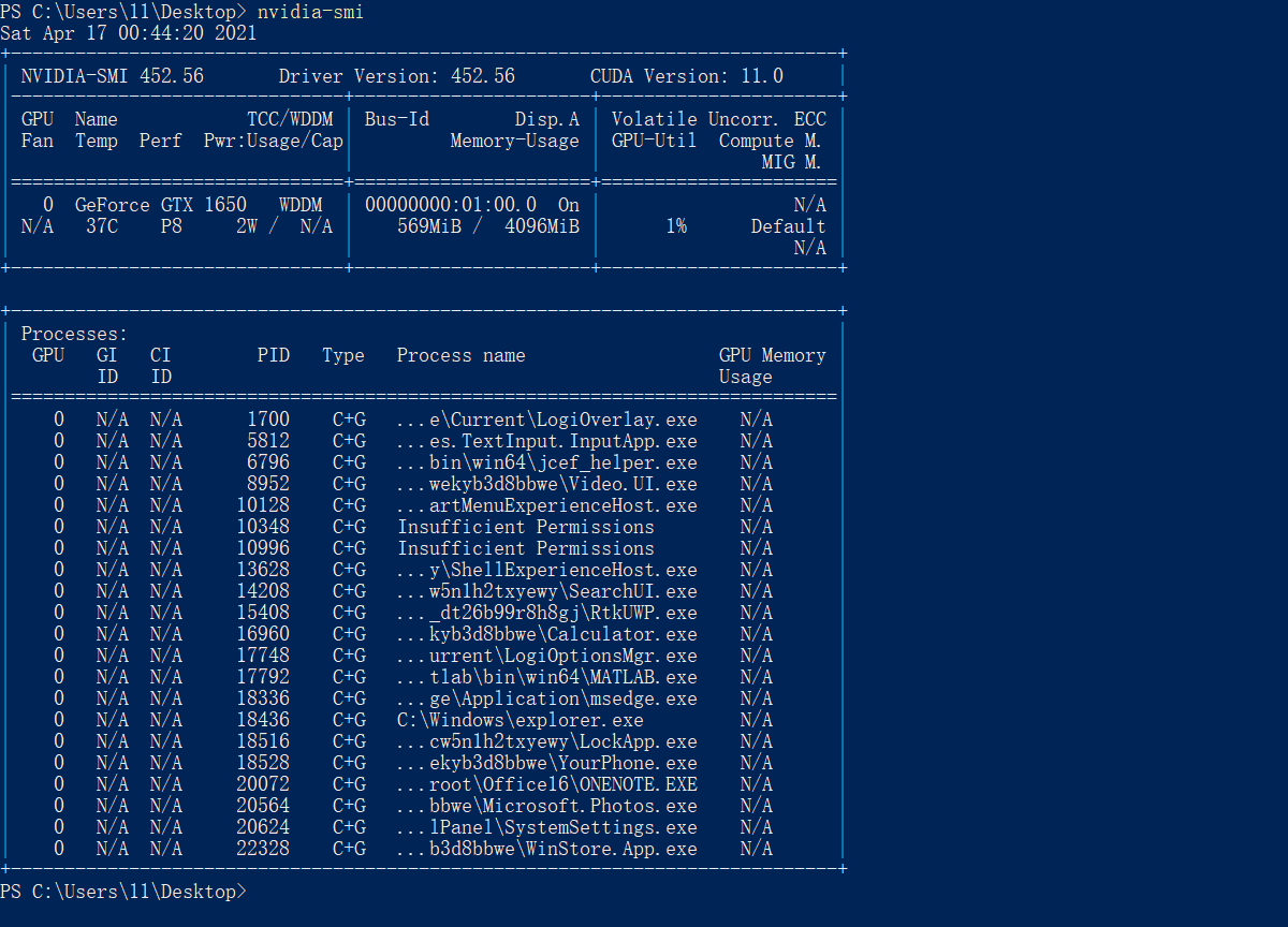 桌面处按住Shift键,鼠标右键,选择“在此处打开Powershell窗口”。然后输入:“nvidia-smi”