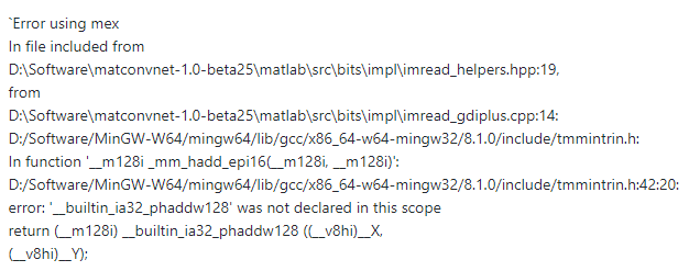 后来查找了很多资料,众说纷纭,也尝试了很多办法。在GitHub上找了别人修改过的vl_compilenn替换我的文件;重新下载不同版本编译器;通过Matlab官网的地址下载MinGW64等