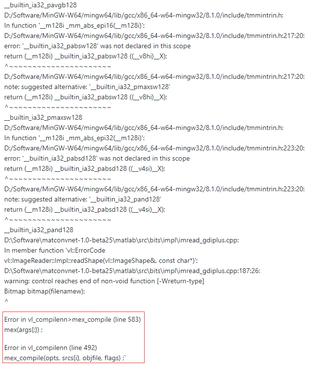 大概就是说在编译vl_compilenn文件时第583行和第492行出现错误。我并没有运行其它的代码,而是直接运行该文件,所以不可能代码出错,要么是该文件本身有错,要么就是编译器的问题。