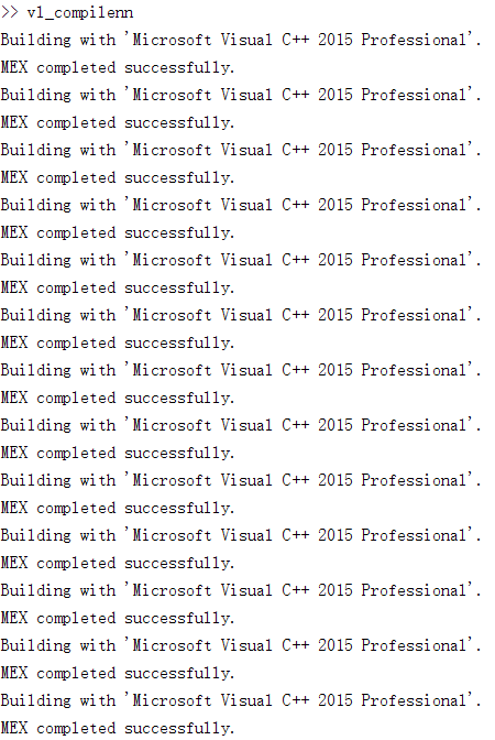 接着cd 到vl_compilenn文件的路径下,在命令行输入“vl_compilenn”,下面就遇到了花费最多时间解决的问题。部分截图如下,中间省略了很多: