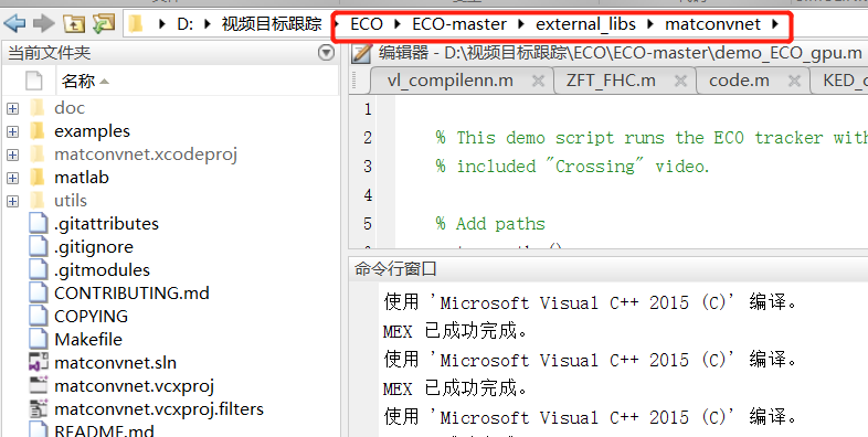 本文只调试了ECO的MATLAB版本当中的CPU和GPU版!重点是讲解如何调试GPU版!重点是讲解如何调试GPU版!重点是讲解如何调试GPU版!我的配置环境是:matlab2018a+cuda9.0+cudnn9.0+VS2015