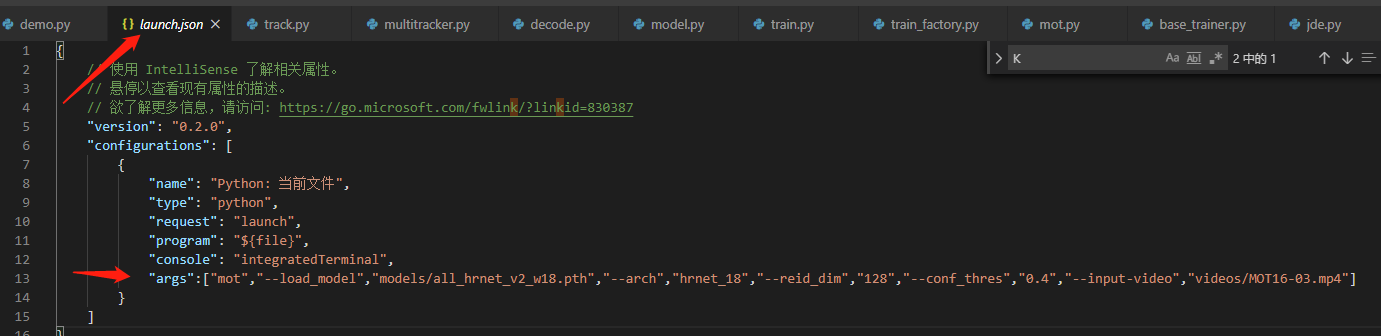 用vscode打开,ctrl+alt+p设置好python环境,然后按照作者提示,配置运行参数: