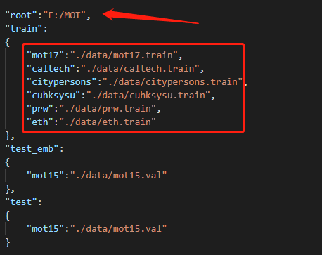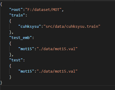 作者训练时准备了很多个数据集混合起来组成了一个大的训练集,这其实是用了JDE跟踪算法的做法,两者用了同一个混合数据集,而且这篇论文的代码也是在JDE代码的基础上改的,里面明显的可以见到跟踪类的名称是JDETracker。