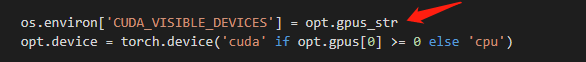 接下来修改GPU的编号,train.py文件中的下面的代码指定了GPU的编号