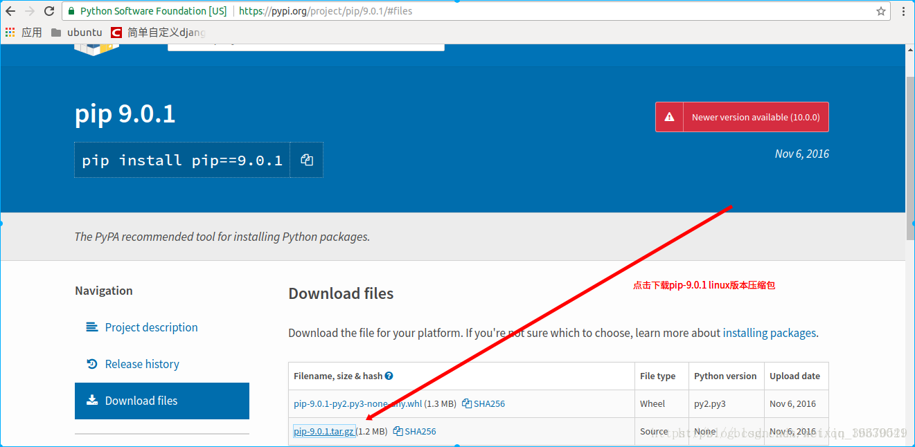 1 从pip官网下载压缩包pip-9.0.1.tar.gz