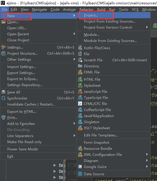 1.打开IDEA → 选择 【file】→【new】→[Project]