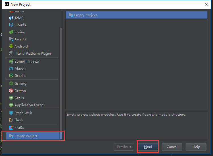 2.选择【Empty Project】 创建一个空项目 点击【Next】
