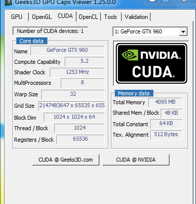 在GPU条件下编译,首先你的显卡得是INVIDA的,并且需要compute compability>2.0,其次一定要考虑版本相互协调的问题,我使用的版本是window7 65bits,vs2013,cuda7.5,MATLAB2014a,显卡是GTX960,compute compability=5.2,关于显卡是否合乎要求,也可以通过下载软件GPU Caps Viewer查看。