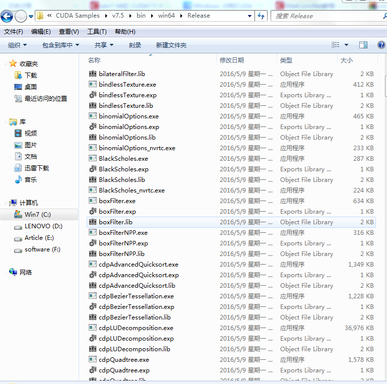 (4) 全部编译成功之后,打开CUDA Samples 文件夹下的 bin/win64/release ,如下图。运行其中的小程序,即可查看GPU CUDA信息。PASS 为通过。
