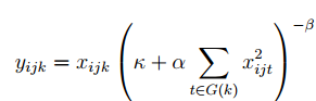y = vl_nnspnorm(x, param, dzdy),PARAM = [PH PW ALPHA BETA];即对每个通道先进行池化操作,池化的方式为取平均,然后在进行归一化操作。其表达式为