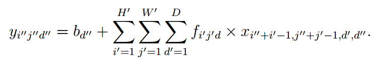 其中ij分别代表图像的高和宽,d”则代表了卷积核的数目,从而对应d”个输出。