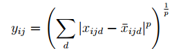1、 [y1, y2] = vl_nnpdist(x, x0, p, varargin)计算每个向量x与目标x0之间的距离,定义为:
