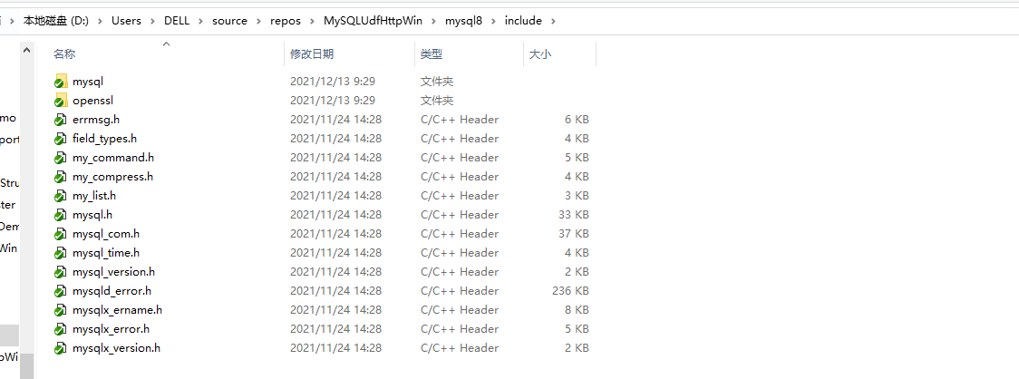 以下示例程序中使用mysql8作为测试对象,示例程序包含1个头文件和1个源代码文件,项目中需要引用curl的头文件和mysql8的头文件