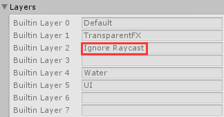 layerMask(蒙版层)默认为 DefaultRaycastLayers,默认层是除“Ignore Raycast”层以外的所有层,即该属性指定光线发射可有接触的层。