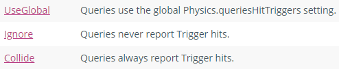 queryTriggerInteraction(是否与触发器交互)默认为 QueryTriggerInteraction.UseGlobal 。