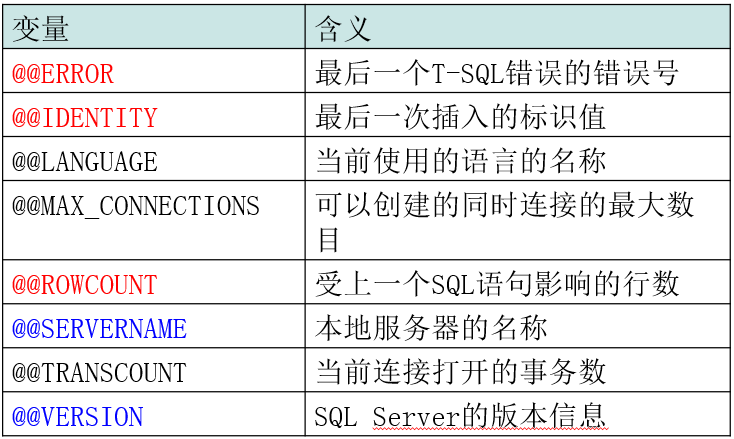 全局变量必须以标记@@作为前缀,如@@version