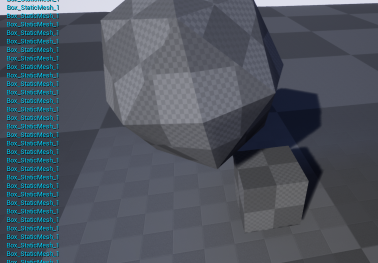 蓝图及结果(球体自由下落砸中盒子最后落在地面上)