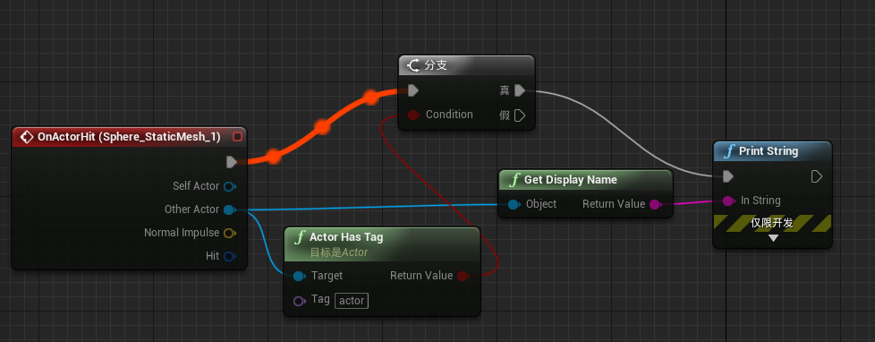 注意:On Actor Hit事件在物体接触的时候会持续发生。分开后不再发生。
