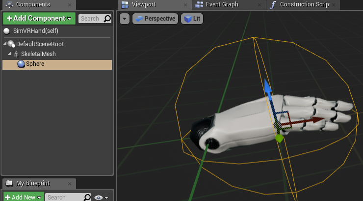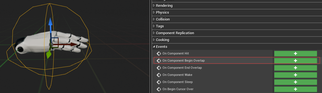 一、对于VR中角色的手模型,一般是在角色中另外添加一个球型碰撞体