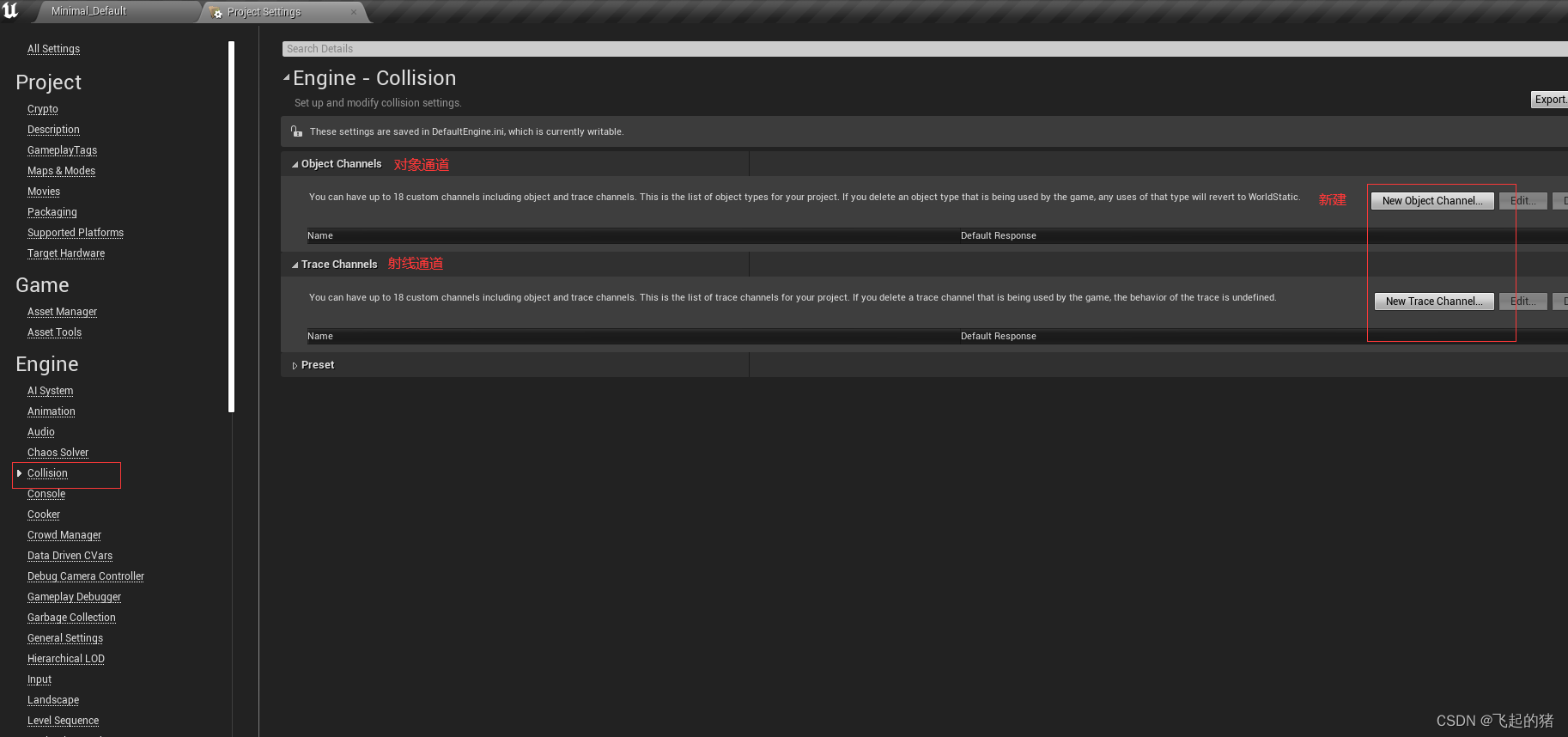 | BlockAllDynamic | 在默认情况下阻挡所有Actor的WorldDynamic对象。所有新自定义信道都将使用其本身的默认响应。 |
