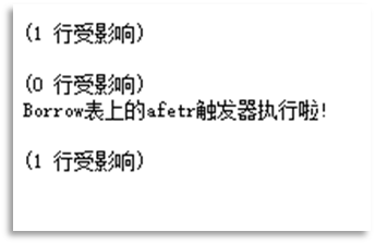 print'Borrow表上的afetr触发器执行啦!'