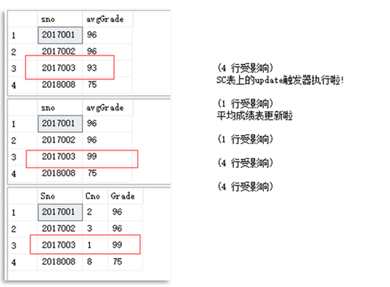 print'SC表上的update触发器执行啦!'