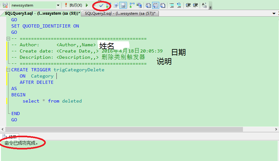 以上就是发嗲微笑最近收集整理的关于SQL server中如何创建触发器触发器创建过程的全部内容,更多相关SQL内容请搜索靠谱客的其他文章。
