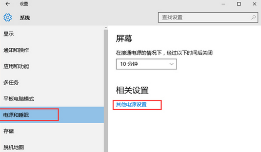 2、在系统界面点击“电源和睡眠”选项,点击右侧的“其他电源设置”。