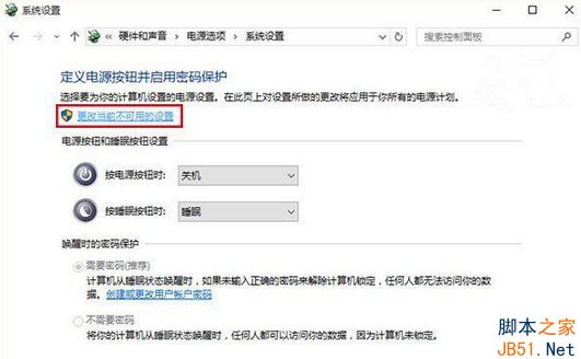 4、点击“更改当前不可用的设置”。