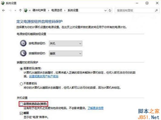 5、将“启用快速启动”前的勾去掉,然后保存设置即可。