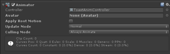 编写一个动画驱动脚本。创建脚本Toast.cs。