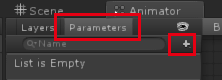 先添加两个跳转条件,点击Parameters选项卡,点击加号添加两个Trigger,分别命名为show和hide。