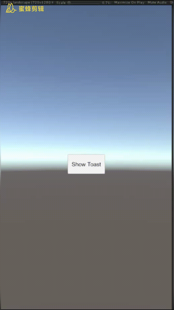 现在启动游戏,点击按钮,可以看到Toast显示两秒钟之后,自动消失了。