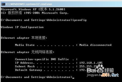 5、然后点击回车键 就可以看到自己的IP了