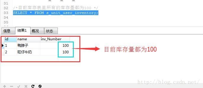 2.7,最后最关健的一部来了,查看我们对应的库存表有没有如期所望,将对应的商品库存减少10条呢