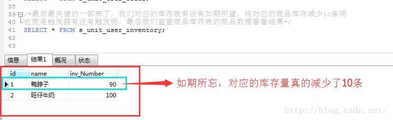 也就是触发器有没有触发呢,最后我们查查商品库存表的商品数据看看结果