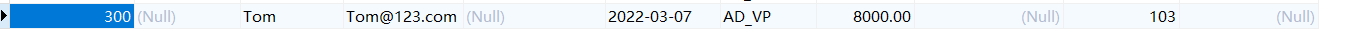 VALUES(300,'Tom','Tom@123.com',CURDATE(),'AD_VP',8000,103);